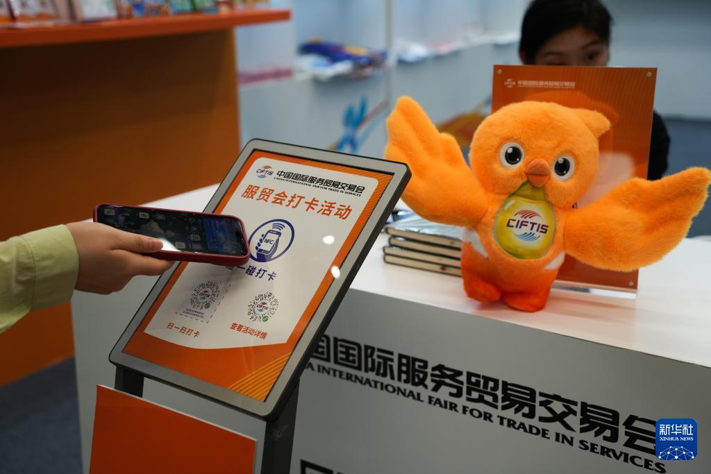 9月13日,參觀者參與服貿(mào)會打卡活動。