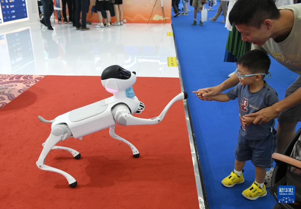 9月13日,在2025廣東國際旅游產(chǎn)業(yè)博覽會現(xiàn)場,觀眾與萌寵機器狗互動。