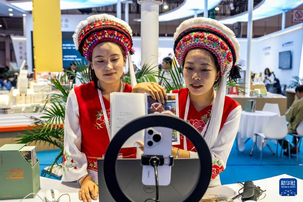 9月17日,參展商在創意云南文化產業博覽會上直播推介云南特色書籍。
