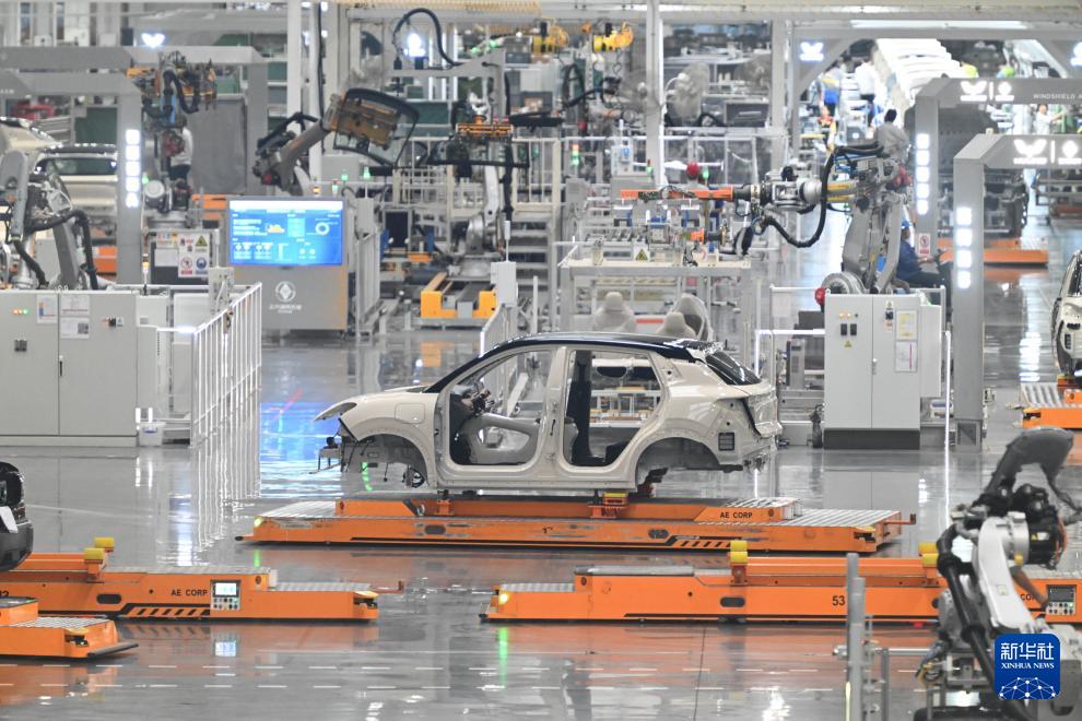 在廣西柳州汽車城,上汽通用五菱“島式”精益智造工廠里忙碌的自動化生產線(9月9日攝)。