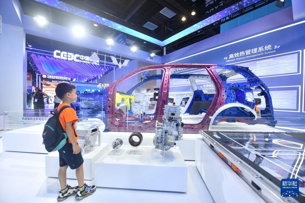 在南寧國際會展中心,觀眾參觀一款柳州產的純電動商用車(9月20日攝)。