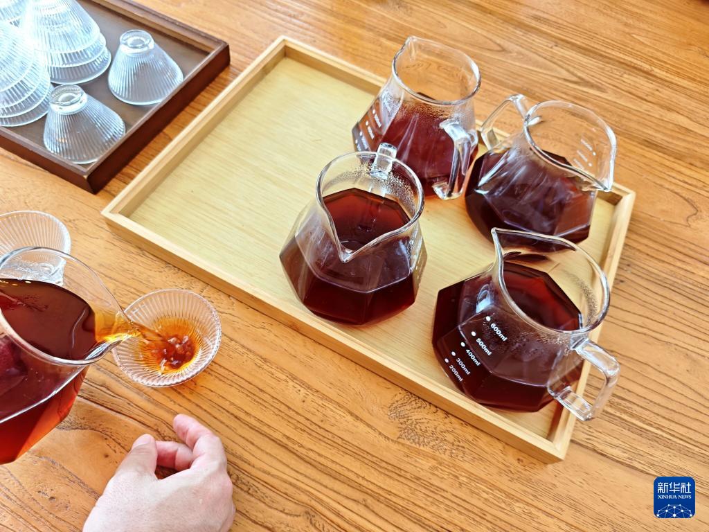 這是普洱市思茅區(qū)南屏鎮(zhèn)南島河村白沙坡小組的“美麗星村·有風(fēng)咖谷”的咖啡師制作的咖啡(9月20日攝)。