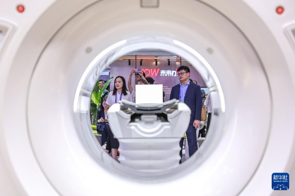 9月25日,觀眾在第四屆全球數(shù)字貿(mào)易博覽會(huì)數(shù)字醫(yī)療展區(qū)參觀智能醫(yī)療設(shè)備。