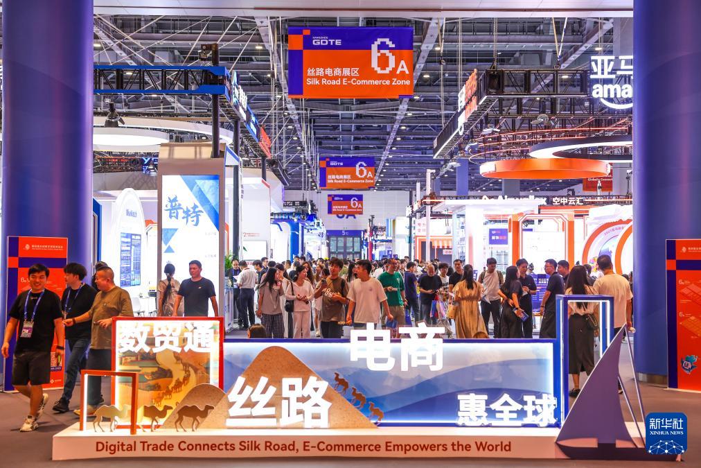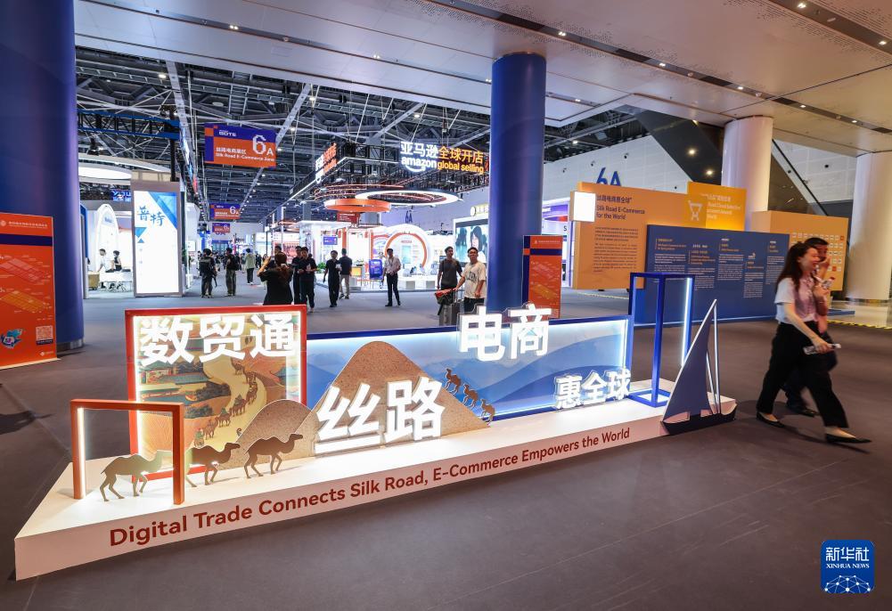 這是9月25日拍攝的第四屆全球數(shù)字貿(mào)易博覽會(huì)絲路電商展區(qū)一角。