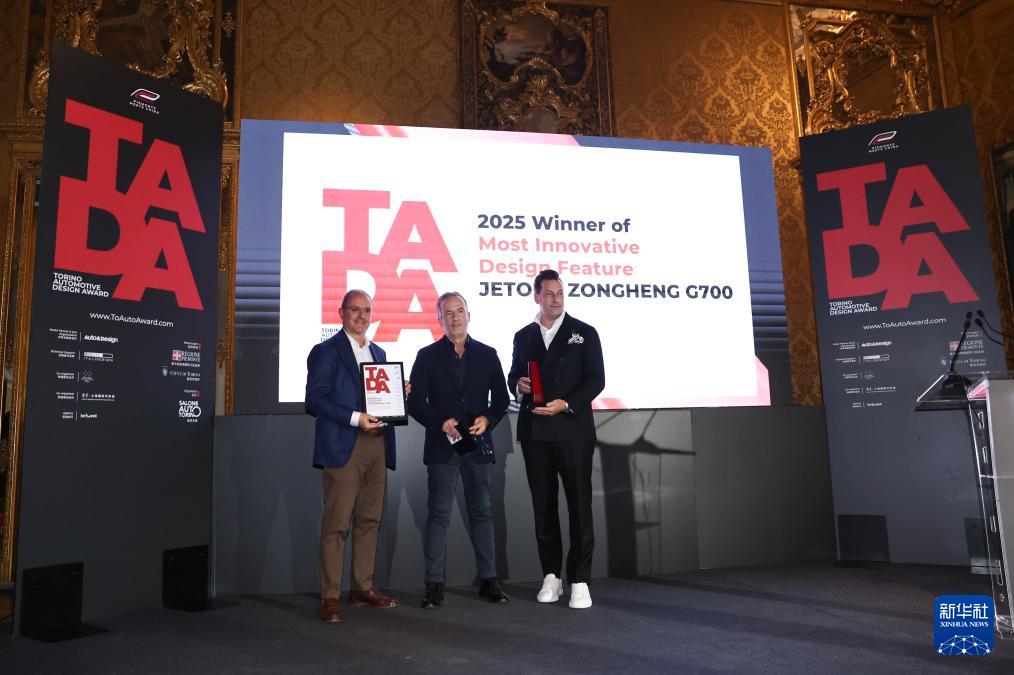 9月26日,在意大利都靈,榮獲“都靈汽車設計獎”最佳創新設計獎的捷途“縱橫G700”代表領獎。