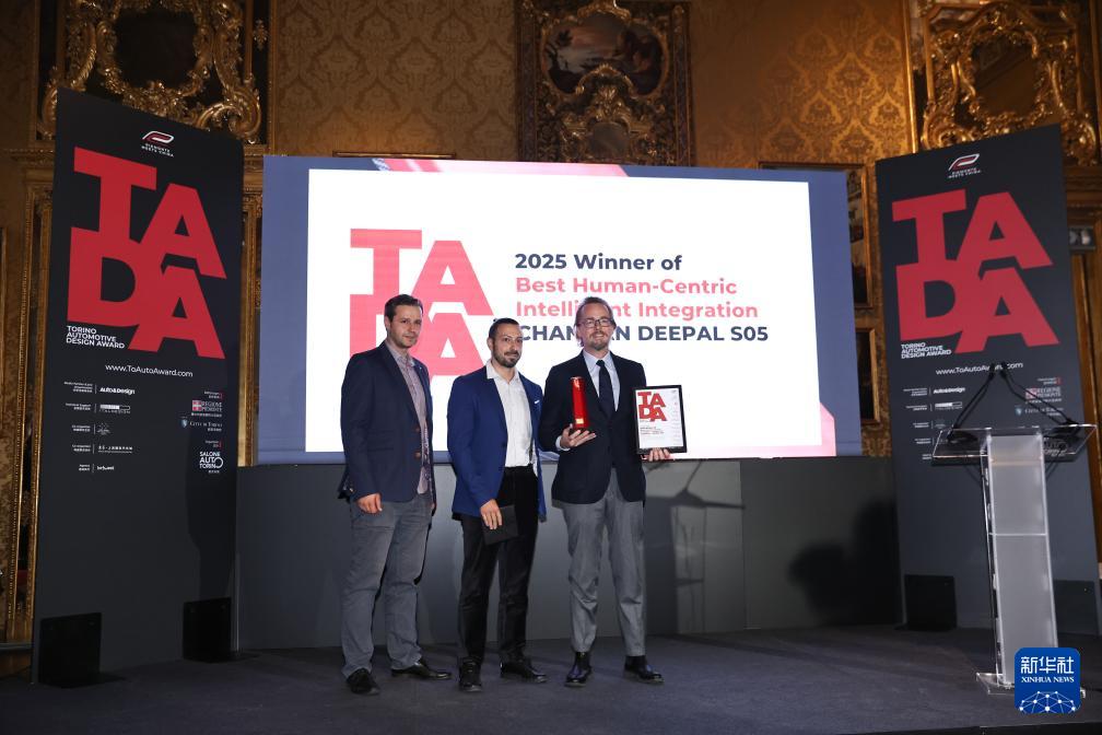 9月26日,在意大利都靈,榮獲“都靈汽車設計獎”最佳智能人機融合獎的長安“深藍S05”代表領獎。