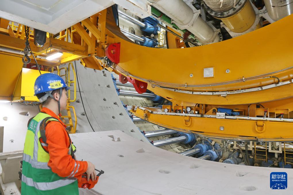 9月28日,施工人員在海太長江隧道工程施工現場拼裝管片。