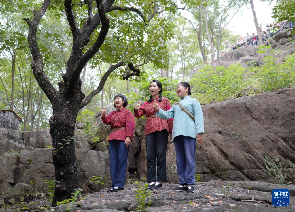 10月3日在位于山東省臨沂市沂南縣的山東紅嫂家鄉旅游區拍攝的沉浸式體驗項目《重走支前路》中的一個環節。