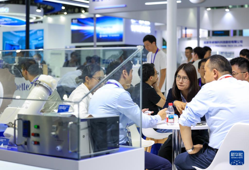 10月15日,參觀者了解一臺晶圓搬運機器人。