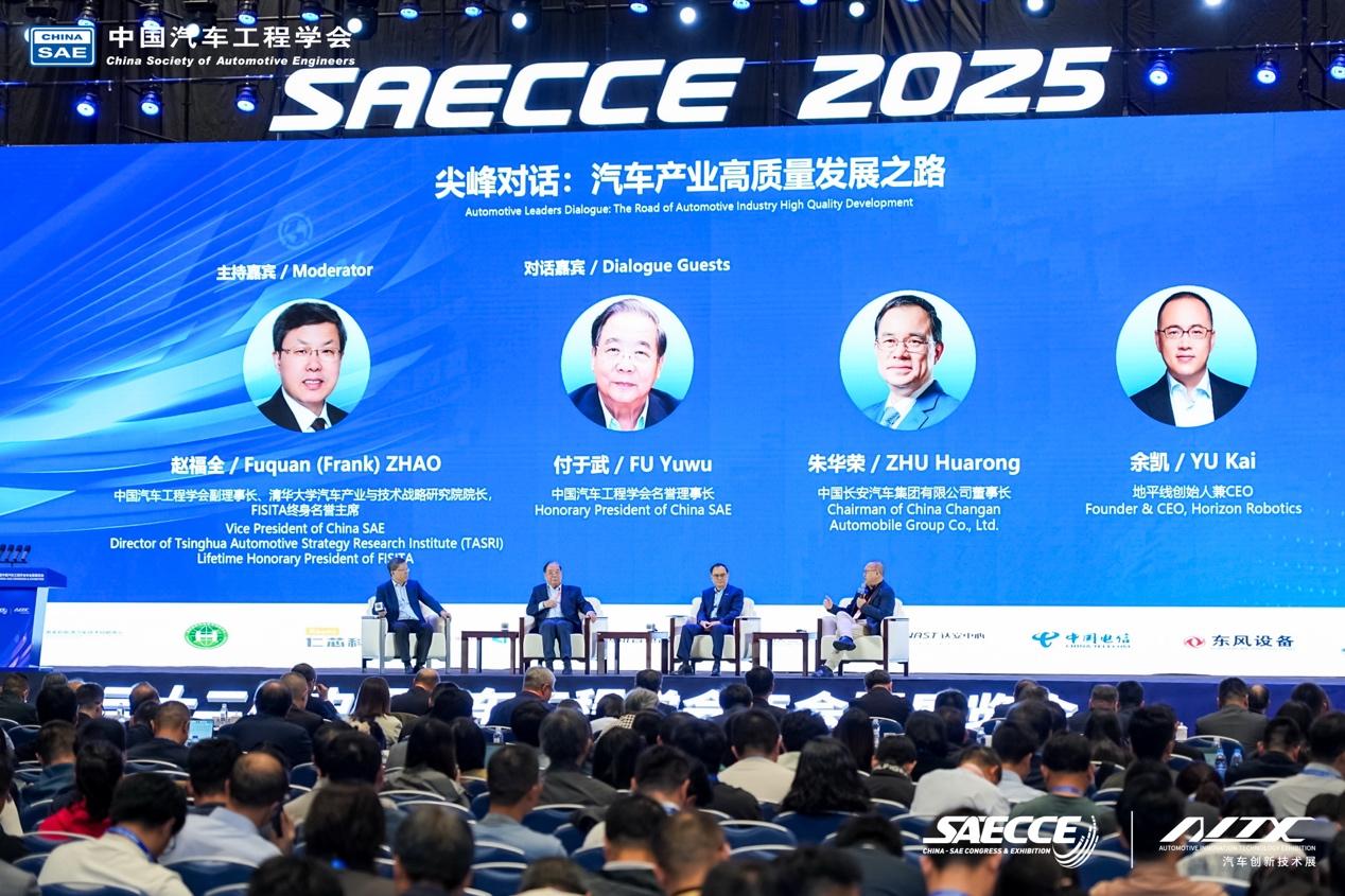 在“尖峰對話”環節,圍繞“汽車產業高質量發展之路”,中國汽車工程學會名譽理事長付于武指出,企業家精神與長期主義是產業發展的關鍵,并強調需構建風清氣正的行業生態。長安汽車董事長朱華榮結合實踐,闡釋高質量發展需兼顧品牌向上、盈利能力與安全體系,出海戰略應秉持長期化、本地化與ESG融合。地平線創始人余凱則從供應鏈視角提出,企業應“耐得寂寞”、敬畏風險,通過專業化分工與協同創新實現可持續競爭力。各方一致認為我國汽車產業需堅持創新、理性競爭與全球協作。