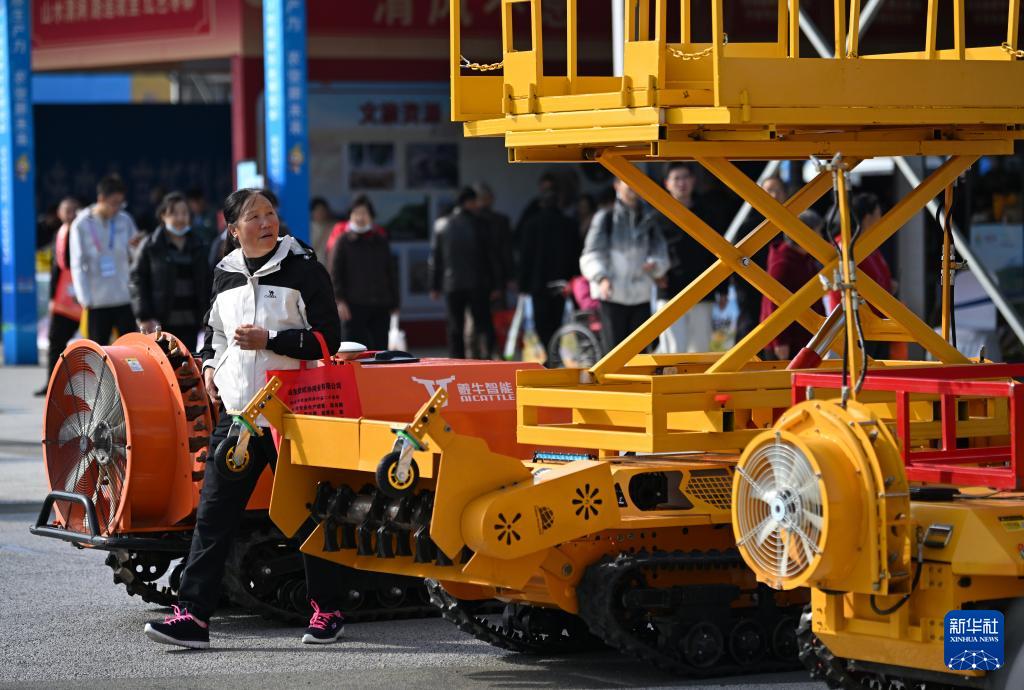 10月26日,參觀者在第32屆楊凌農高會上了解渭南君創飛科技有限公司的履帶果園管理機。
