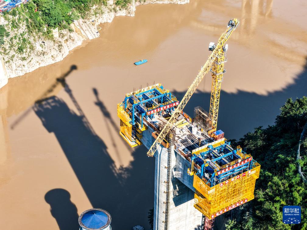 這是10月28日拍攝的西渝高鐵嘉陵江特大橋建設現場(無人機照片)。