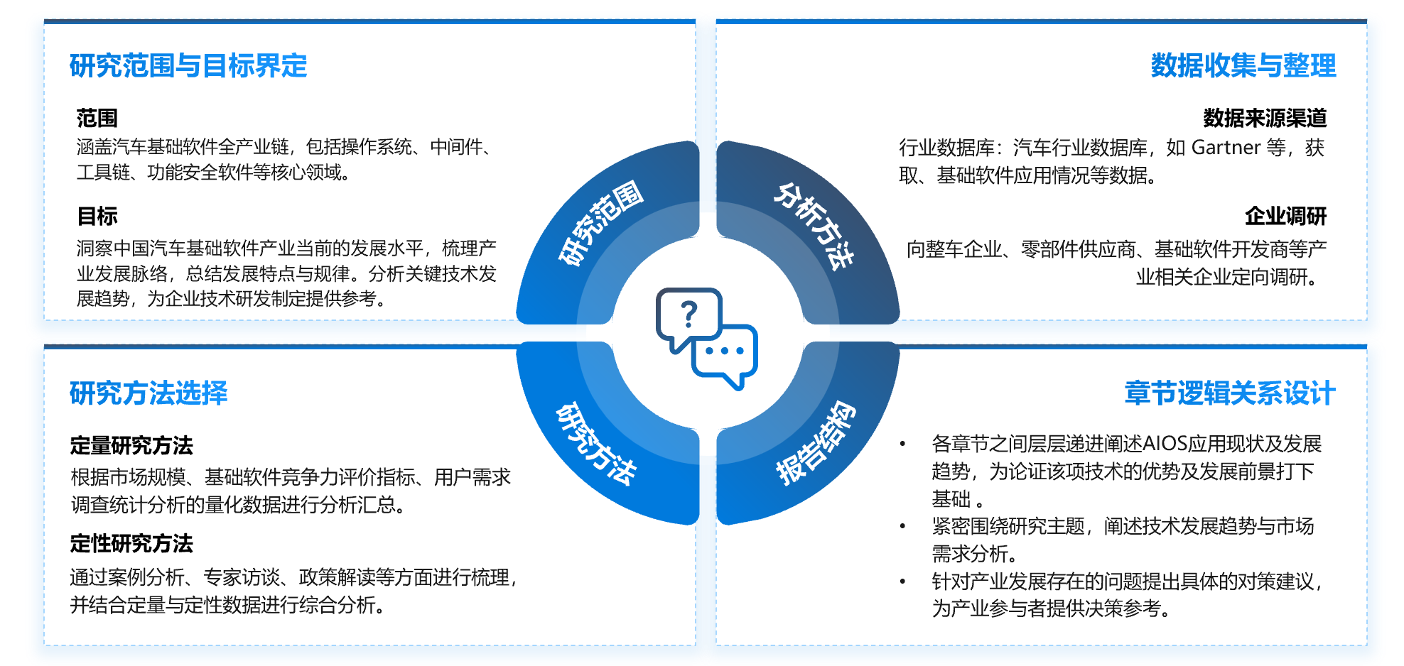 李冰首先對本次《研究報告6.0》研究方法及范圍進行介紹,本次研究涵蓋汽車基礎軟件全產業鏈,包括操作系統、中間件、工具鏈、功能安全軟件等核心領域。洞察中國汽車基礎軟件產業當前的發展水平與AI結合的進展情況,梳理產業發展脈絡,總結發展特點與規律。分析關鍵技術發展趨勢,為企業技術研發制定提供參考。