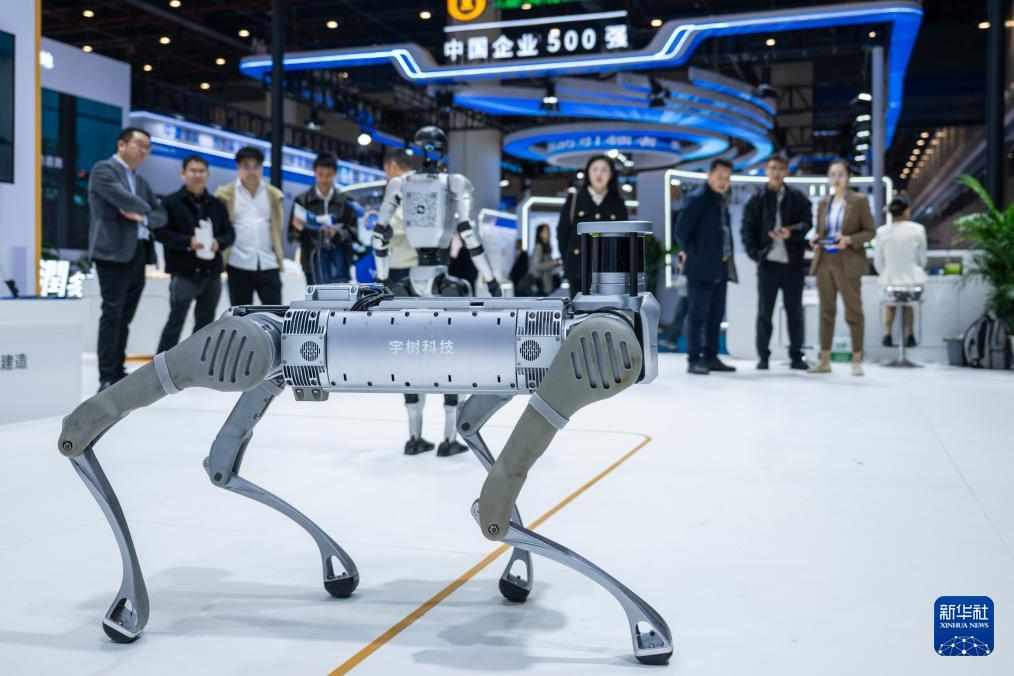 10月31日,觀眾在博覽會現場參觀宇樹科技的智能機器狗。