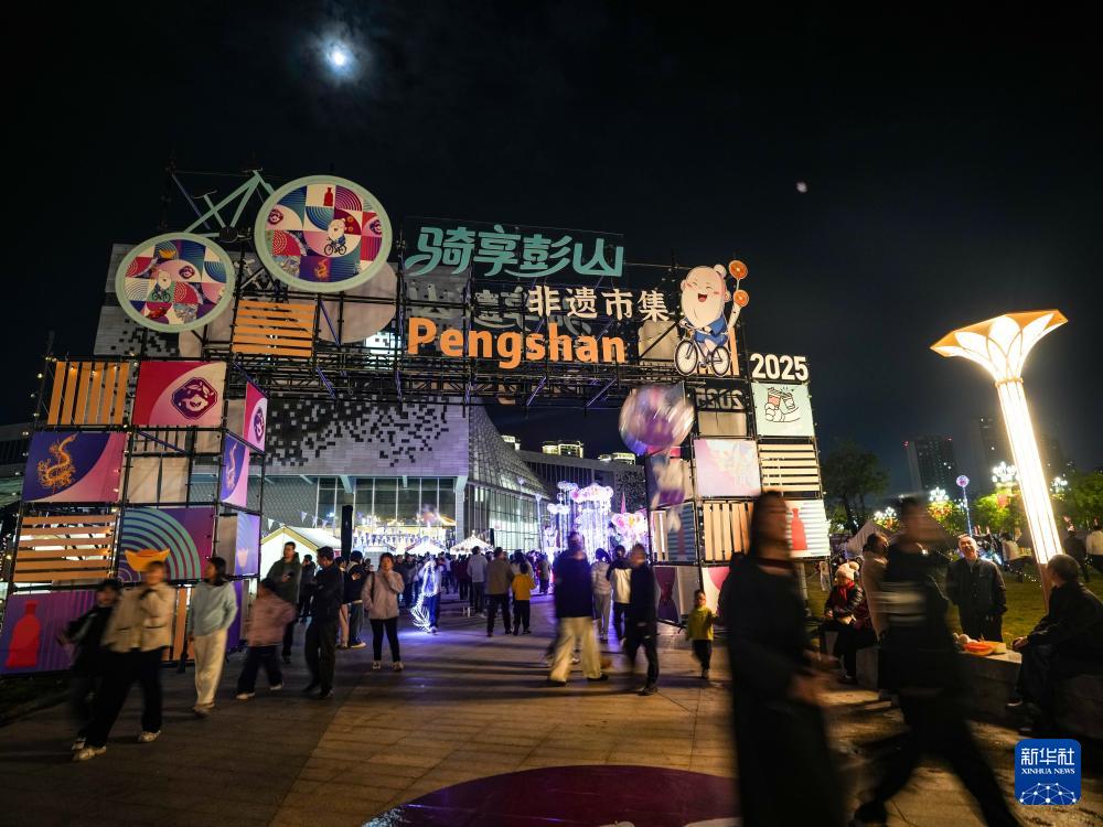 11月1日,在四川省眉山市彭山區(qū),游客在非遺市集休閑觀光。