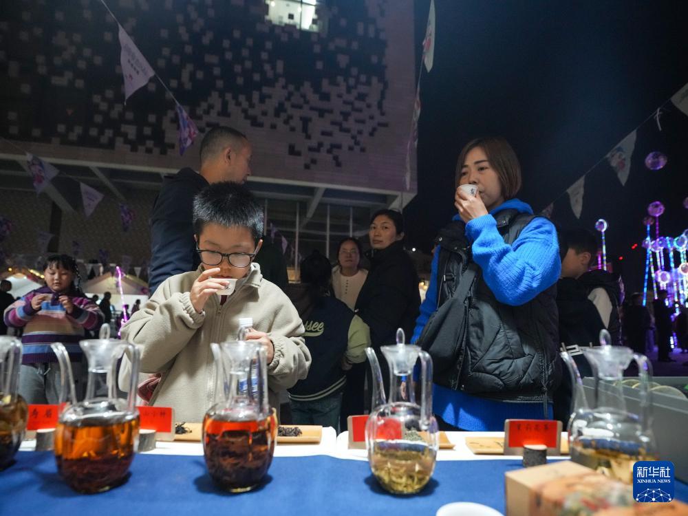 11月1日,在四川省眉山市彭山區(qū),游客在非遺市集品嘗當?shù)靥厣砩轿潢柌琛?/p>