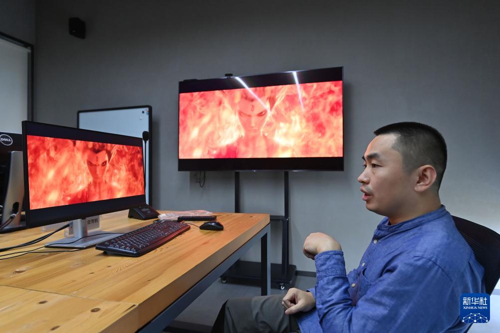 11月2日,墨境天合成都數字圖像科技有限公司總監邢明禮在介紹公司業務。墨境天合成都數字圖像科技有限公司專注于國內頂級視覺特效與動畫制作,參與《哪吒之魔童鬧海》等近百部電影視效制作。