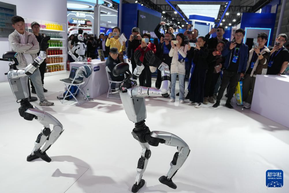 11月6日,觀眾在2025年世界互聯(lián)網(wǎng)大會“互聯(lián)網(wǎng)之光”博覽會現(xiàn)場觀摩人形機(jī)器人跳舞。