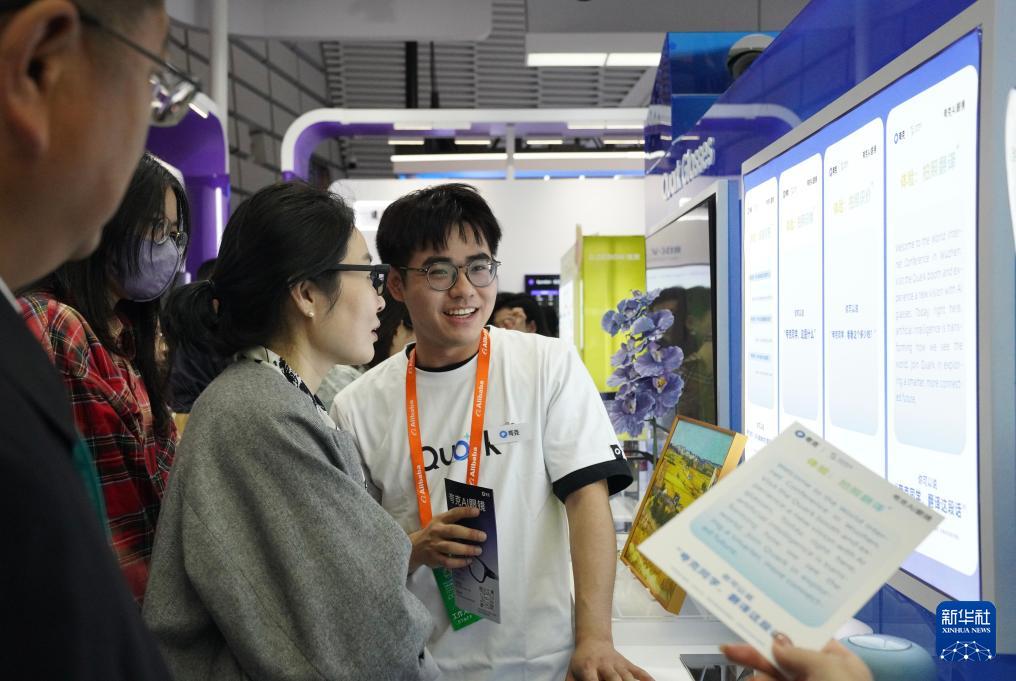 11月6日,觀眾在2025年世界互聯(lián)網(wǎng)大會“互聯(lián)網(wǎng)之光”博覽會現(xiàn)場的AI眼鏡展臺試戴AI眼鏡。