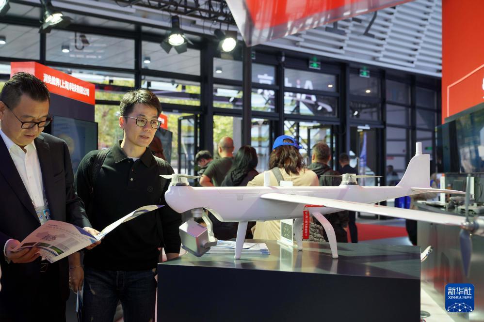 11月6日,嘉賓在觀看可提供空中巡檢服務(wù)的“道通龍魚 Pro”垂直起降固定翼。