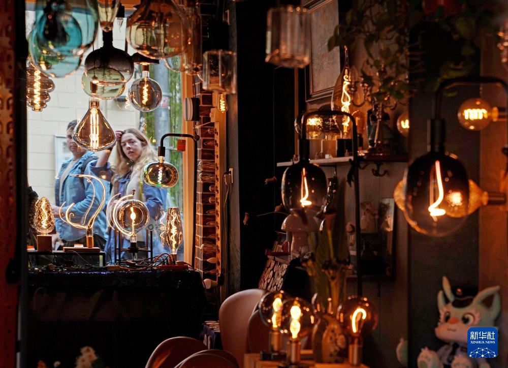 11月12日,行人從上海市長寧區愚園路一家燈具店的櫥窗前走過。