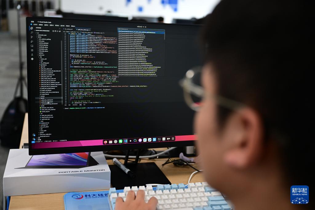 10月24日,張鴻偉在編寫和調試代碼。新華社記者 周牧 攝