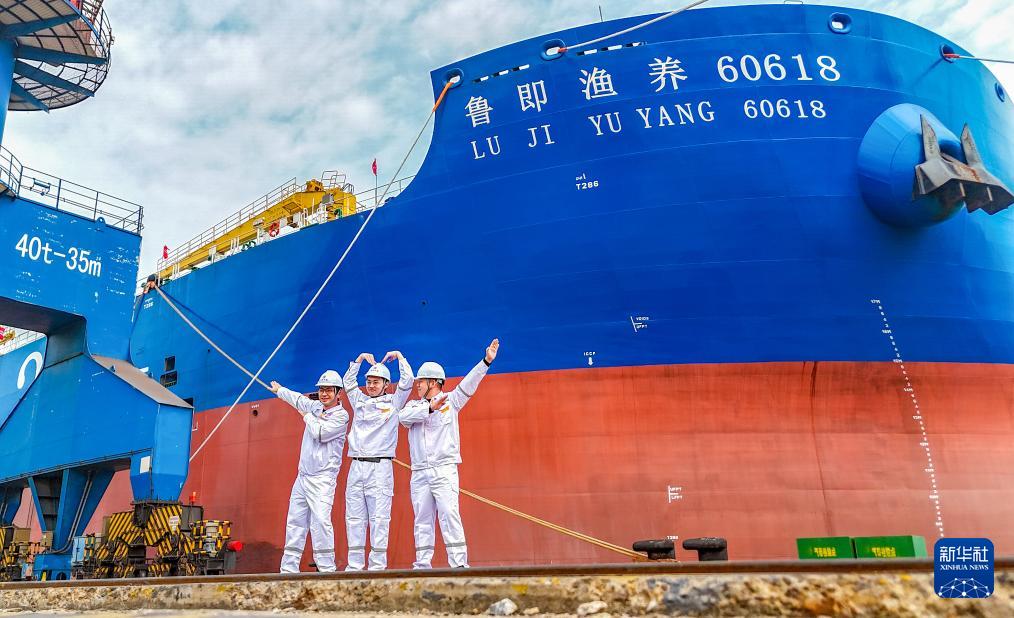 11月15日在中國(guó)船舶集團(tuán)青島北海造船有限公司拍攝的“國(guó)信1號(hào)2-2”船(無人機(jī)照片)。