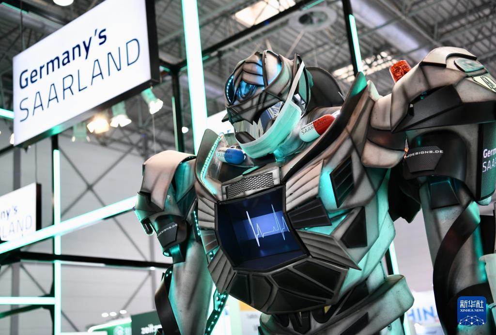 這是11月17日在德國杜塞爾多夫國際醫療器械設備展上拍攝的裝飾機器人。