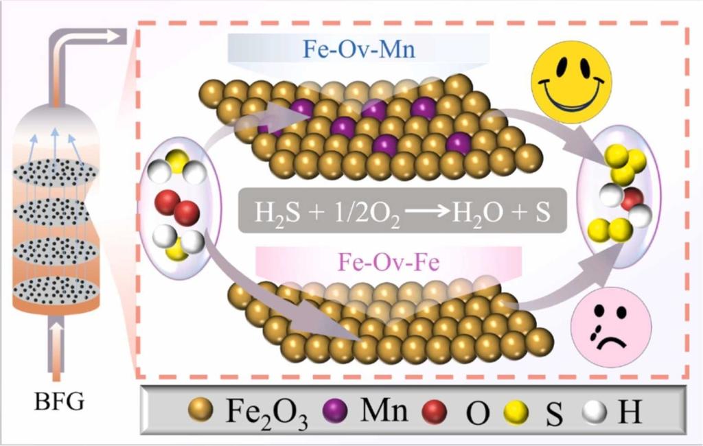 “基于鐵與錳原子半徑和物理化學(xué)性質(zhì)相似的特點(diǎn),我們采用錳摻雜三氧化二鐵的合成方法,成功制備出具有豐富表面非對(duì)稱氧空位的‘金屬—分子篩’復(fù)合催化劑。”寧平介紹,這種方法能讓錳物種完整嵌入三氧化二鐵晶格,形成獨(dú)特的非對(duì)稱鐵—氧—錳結(jié)構(gòu),并進(jìn)一步構(gòu)建出鐵—氧空位—錳活性中心,顯著提升了催化劑的氧活化性能,為硫化物的高效轉(zhuǎn)化提供了堅(jiān)實(shí)基礎(chǔ)。
