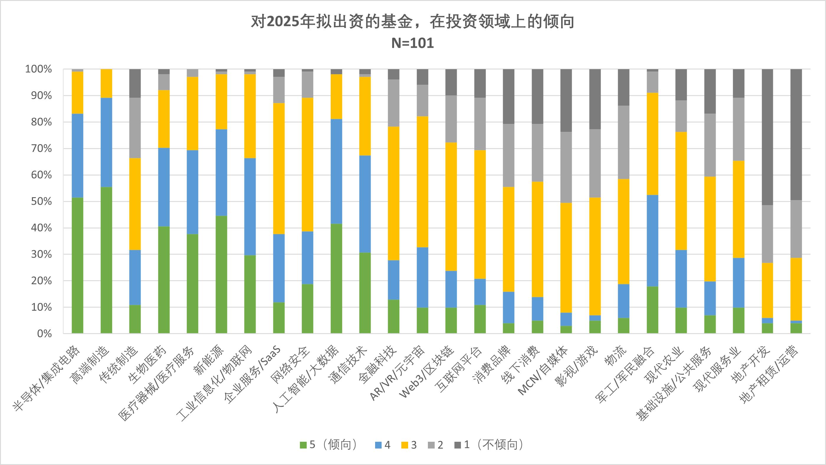 調(diào)研結(jié)果顯示,早期創(chuàng)投基金(天使/VC)、私募股權(quán)基金及政府引導(dǎo)基金最受青睞,市場(chǎng)化內(nèi)資機(jī)構(gòu)和本地國(guó)資背景GP更受信任,產(chǎn)業(yè)資本+政府資金的混合LP結(jié)構(gòu)更受偏好,這顯示出資源協(xié)同價(jià)值高于單純財(cái)務(wù)投資。半導(dǎo)體、高端制造、生物醫(yī)藥等“卡脖子”領(lǐng)域占據(jù)絕對(duì)主導(dǎo),而消費(fèi)、文娛等周期敏感型行業(yè)被普遍回避,反映出LP對(duì)政策導(dǎo)向與產(chǎn)業(yè)鏈安全的強(qiáng)敏感性。