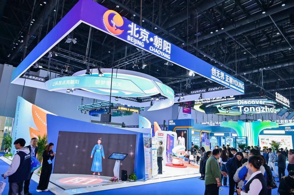 北京朝陽展區(qū)緊扣“創(chuàng)無界 正朝YOUNG”主題,以“鳳凰展翅”為設(shè)計(jì)理念,通過數(shù)字人、智能交互等多元形式,打造了四大核心板塊。其中,“讓科技點(diǎn)亮朝陽”板塊集中展現(xiàn)了朝陽區(qū)“商務(wù)+科技”雙輪驅(qū)動(dòng)的發(fā)展成果。2025年上半年,信息服務(wù)業(yè)、科技服務(wù)業(yè)增加值合計(jì)占GDP比重達(dá)25.8%,科技服務(wù)業(yè)實(shí)現(xiàn)營收、拉動(dòng)力“全市雙第一”。