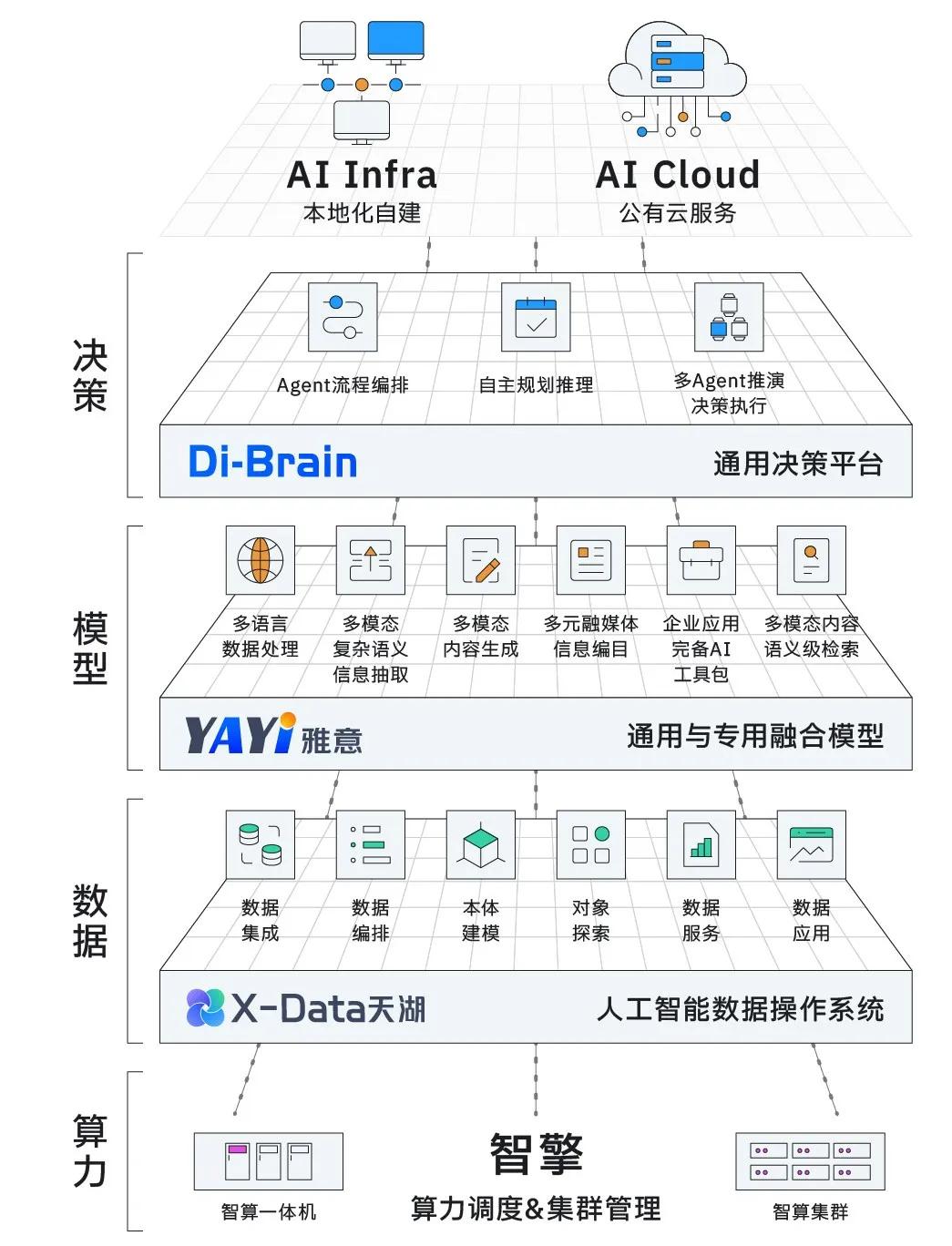 在模型層面,DIOS行業級大模型,讓AI真正理解業務。內置通專融合的雅意系列模型,DIOS具備多語言、多模態處理能力,在跨語言理解、復雜信息抽取、內容生成、行業數據增強、智能任務規劃等方面表現領先,兼具高遷移性與算力調度效率。此外,平臺融合中國科學院磐石科學基礎大模型與自研D1決策大模型,提供“科學思維+決策推演”的智能力,支撐多行業復雜場景智能應用。