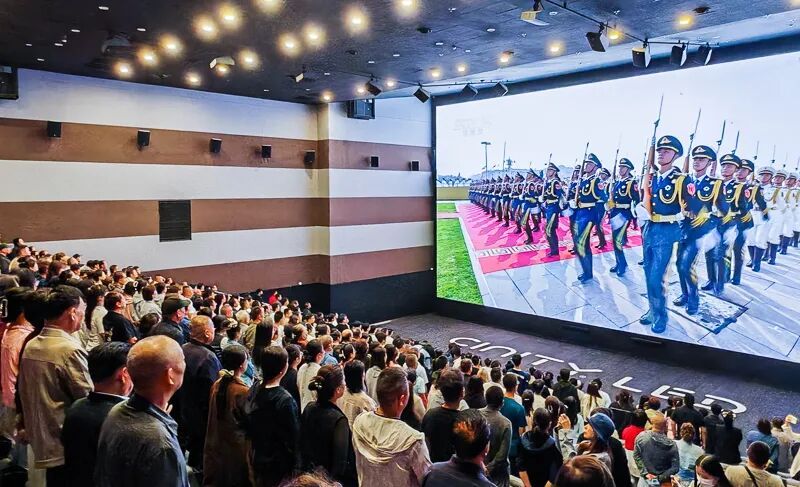 “在巨幕影院觀看紀(jì)念中國(guó)人民抗日戰(zhàn)爭(zhēng)暨世界反法西斯戰(zhàn)爭(zhēng)勝利80周年大會(huì)直播非常震撼,祝福祖國(guó)越來越強(qiáng)大!”居民張軍激動(dòng)地說道,眼中閃爍著自豪的光芒。