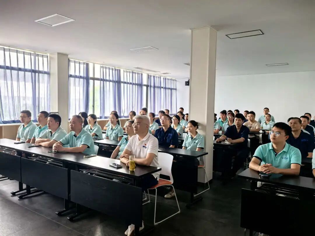 觀看現場氣氛熱烈、反響高漲。當威武雄壯、步伐鏗鏘的閱兵方隊和一系列先進武器裝備列陣長空、展現在屏幕中時,在場員工無不由衷贊嘆。臺籍主管林晉宏難掩激動之情說:“祖國現代化國防建設成就非凡,展現了捍衛和平的堅定決心。”董事長周建福表示,企業深耕大陸市場十余年,見證了祖國發展成就,將繼續發揮橋梁作用推動兩岸交流合作。他強調中華民族偉大復興是兩岸同胞共同夢想,企業將一如既往為民族復興貢獻力量。