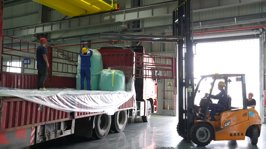 在海創尚緯倉庫,工人正將一批人造石墨負極材料產品裝車,這批產品將陸續發往全國各地的客戶手中。距離試生產僅僅不到一年時間,如今海創尚緯各產線全線貫通,企業產能正穩步爬坡并有效發揮。