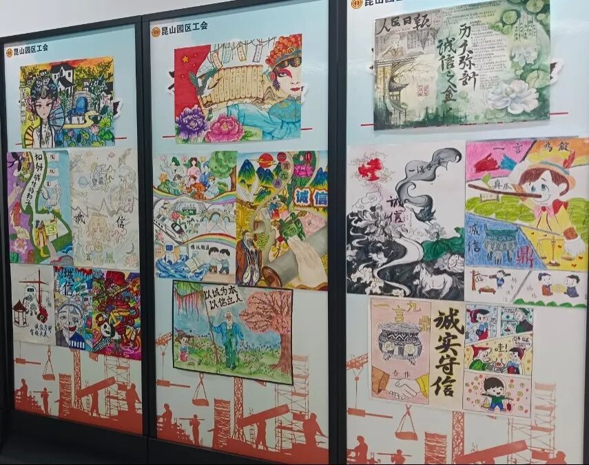 昆山高新區行政審批局聯合昆山市信用辦和富士康,共同舉辦了“以誠為本·以信立人”主題誠信宣傳系列活動,在富士康園區打造“誠信之路”主題墻繪互動展區,特別設置了“征文+繪畫”競賽及親子創作環節,共征集到征文作品59篇、繪畫作品61幅,以藝術為媒,激發企業職工誠信共鳴,并通過企業守信激勵與失信懲戒案例分享會,生動詮釋“誠信興商、失信難行”的市場法則。