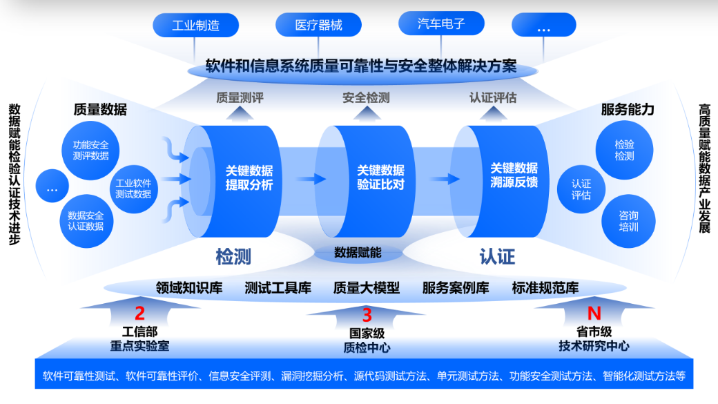 工業和信息化部電子第五研究所華東分所(中國賽寶(華東)實驗室)牽頭建設的“面向信息系統與產品質量安全檢測認證公共服務示范平臺”用數據賦能檢測認證,提供信息系統測試、數據安全評估、信息技術服務能力認證等服務。