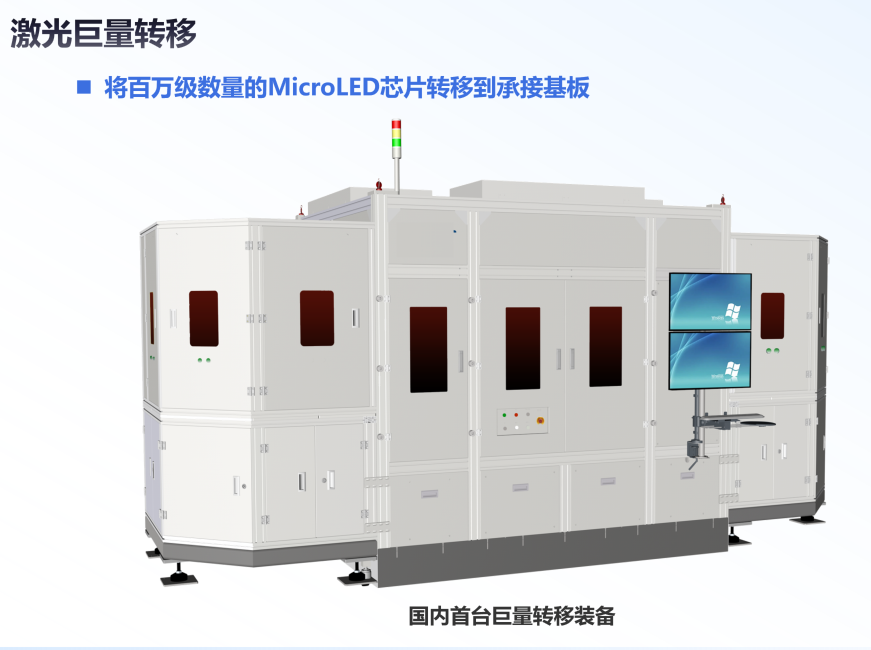 通過技術創新有效解決巨量轉移過程中的波長一致性、精度與良率兼容問題,并成功突破G4.5玻璃基大幅面焊接問題等痛點和難點。