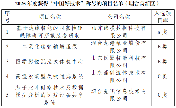 近日,中國生產力促進中心協會公布2025年度“中國好技術”評選結果,煙臺高新區推薦申報的5項科技成果從全國654項參評項目中脫穎而出,成功斬獲此項殊榮,涵蓋智慧醫療、高端裝備等關鍵領域,彰顯了區域創新驅動發展的強勁動能。