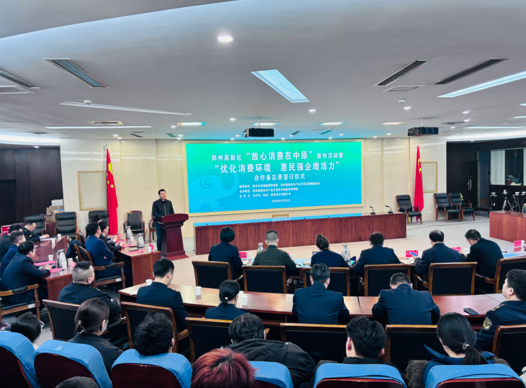 10月29日下午,在鄭州市市場監管局與鄭州高新區管委會聯合指導下,鄭州高新區市場監督管理局與支付寶(杭州)信息技術有限公司正式簽署“優化消費環境 惠民強企增活力”合作備忘錄,并同步啟動“放心消費在中原”宣傳活動。雙方共同打造的“線下消費云端和解”新模式在河南省尚屬首創,標志著鄭州在運用數字技術優化消費環境、提升消費維權效能方面邁出關鍵一步。
