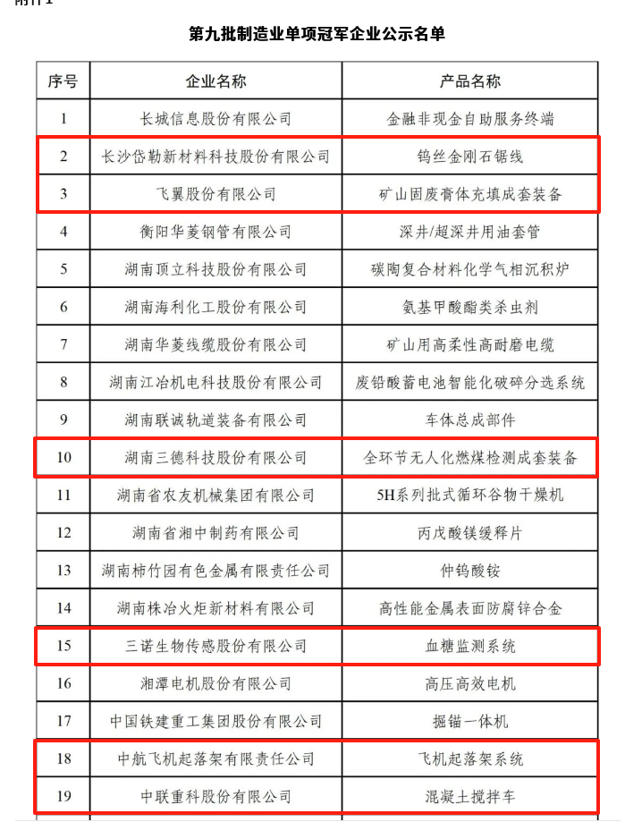 近日,工業和信息化部第九批制造業單項冠軍企業名單完成公示,湖南省22家企業榜上有名,長沙占據10席,中聯重科、岱勒新材、三諾生物等6家湖南湘江新區企業(含統籌區)攜代表產品上榜。