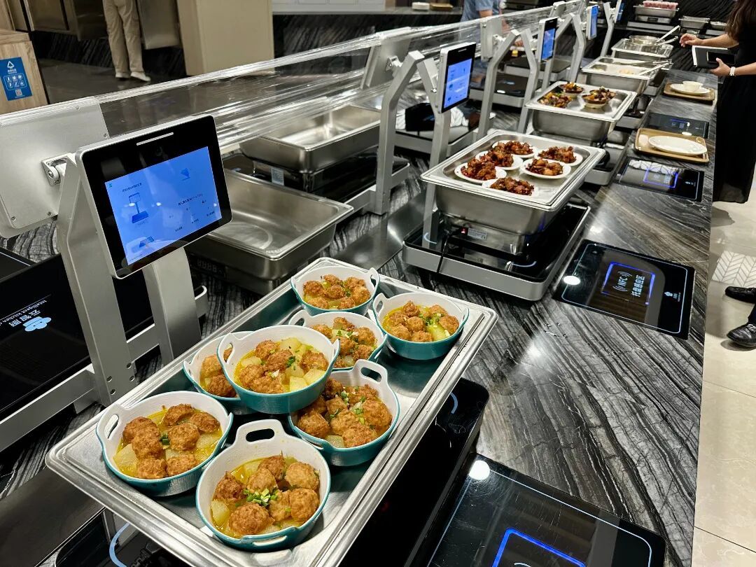 2021年,真咯便當在蘇州高新區打造了蘇州首個智能稱重食堂,一亮相就圈粉無數。首次來到食堂,顧客只需通過注冊、錄入信息、錢包充值、綁定餐盤等幾步簡單操作,手中的餐盤便化身為“移動錢包”。只要把綁定信息的餐盤放置在每個菜品識別區,餐盤旁的屏幕就會實時顯示菜品重量和金額,拿起餐盤即可實現扣費。