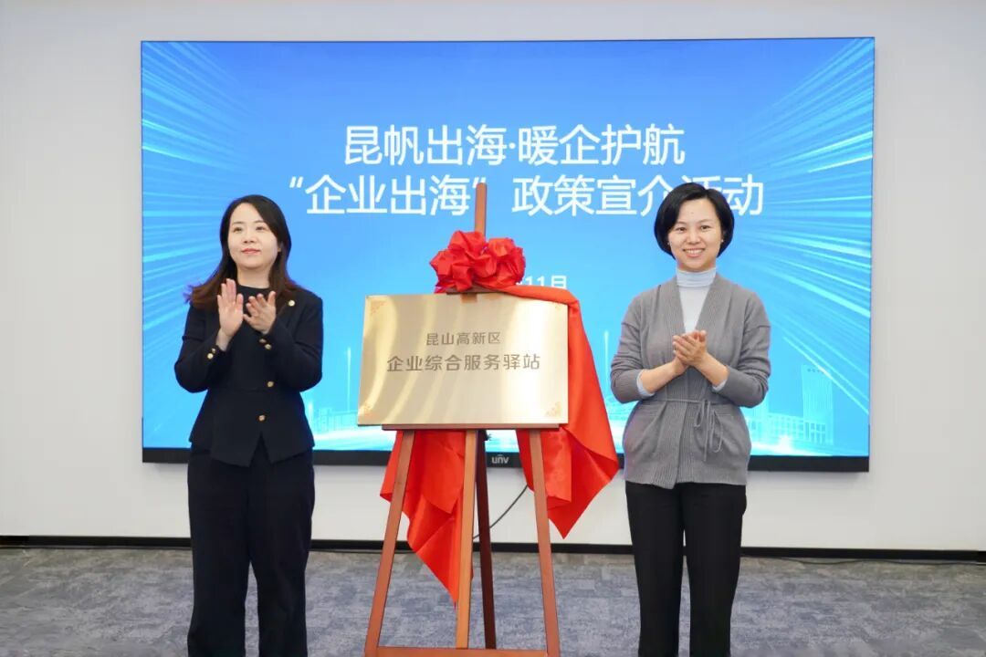 活動現場,昆山高新區企業綜合服務驛站正式揭牌。該驛站位于昆山全球數字創新港,不僅是企業身邊的“出海服務站”,還為企業提供政策咨詢、項目申報、審批辦理等個性化、精準化服務。企業可以根據自身需求進行“點單”,驛站統籌協調,迅速將需求精準“派單”,各相關部門協同合作,及時“接單”處理,形成服務合力,讓企業綜合服務驛站成為匯聚企業真實聲音的“前哨站”,真正實現“高效辦成一件事”。