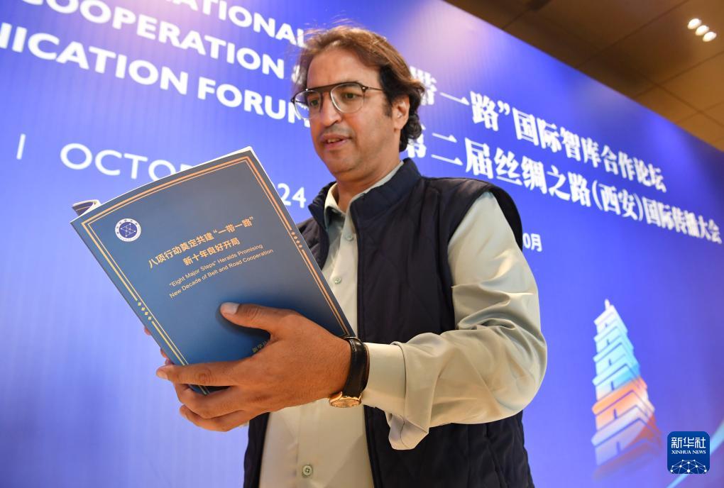 當日,在“一帶一路”國際智庫合作論壇暨第二屆絲綢之路(西安)國際傳播大會上,新華社國家高端智庫發(fā)布了《八項行動奠定共建“一帶一路”新十年良好開局》智庫報告。新華社記者 邵瑞 攝