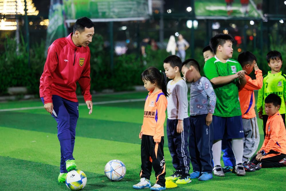 4月8日,董永恒(左一)在對榕江縣的小球員進行培訓。新華社記者 劉續 攝