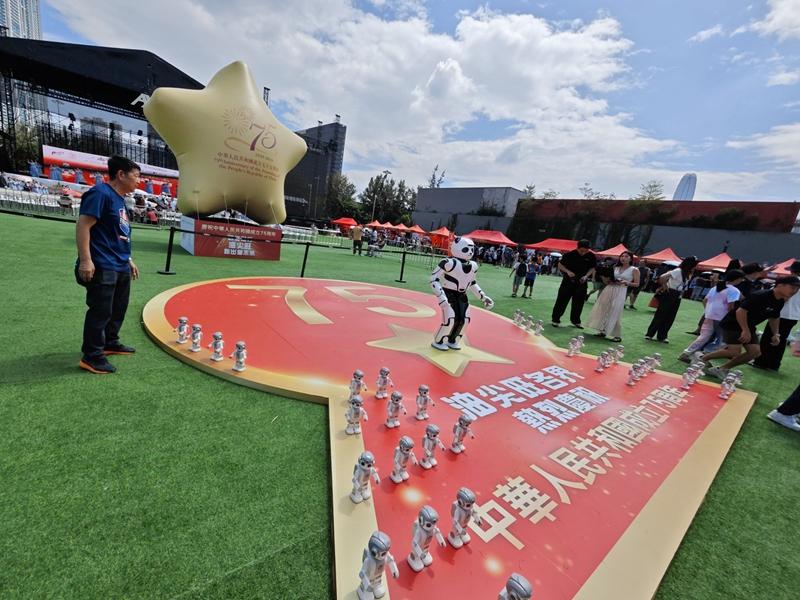 10月1日,香港油尖旺區各界在西九文化區組織了一場文化和科技交織的慶典。圖為慶典上展示的機器人。新華社記者 褚萌萌 攝