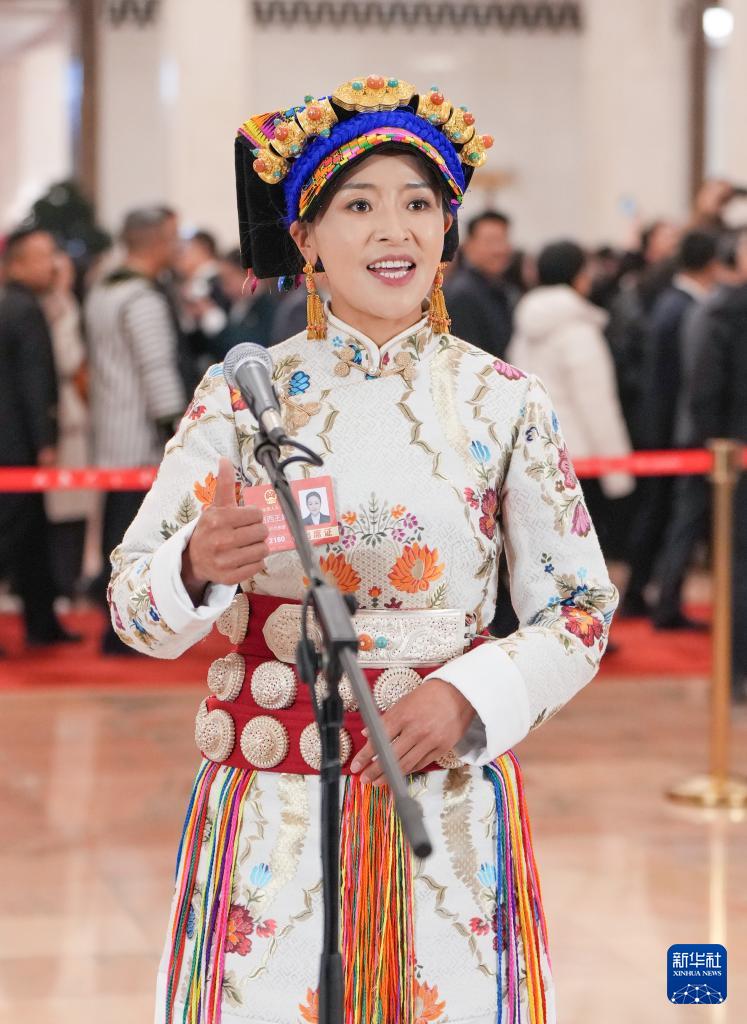 3月5日,第十四屆全國(guó)人民代表大會(huì)第三次會(huì)議首場(chǎng)“代表通道”集中采訪活動(dòng)在北京人民大會(huì)堂舉行。這是全國(guó)人大代表格西王姆接受媒體采訪。