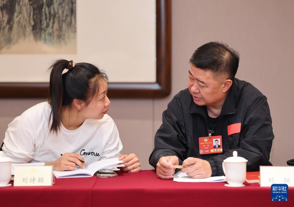3月5日,全國政協委員劉詩穎(左)與劉征交流。