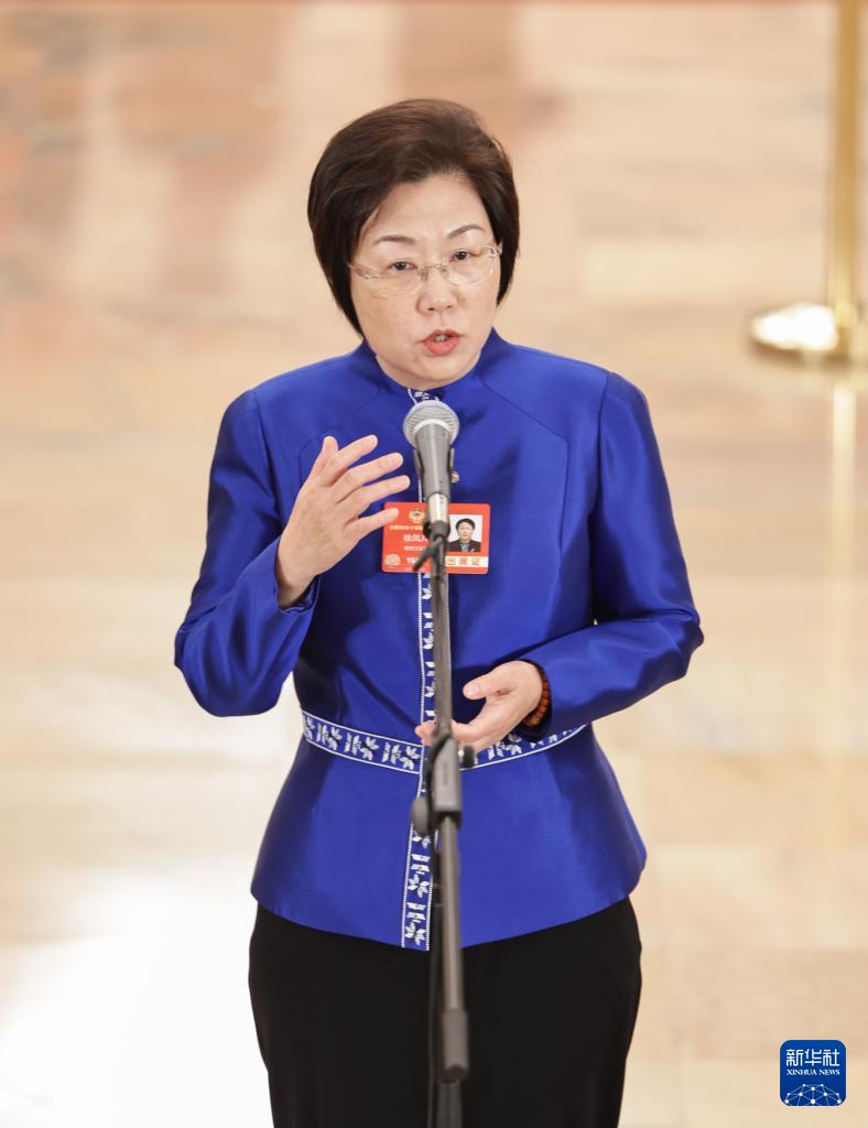 3月7日,全國政協(xié)十四屆三次會議第二場“委員通道”集體采訪活動在北京人民大會堂舉行。這是全國政協(xié)委員徐鳳芹接受媒體采訪。