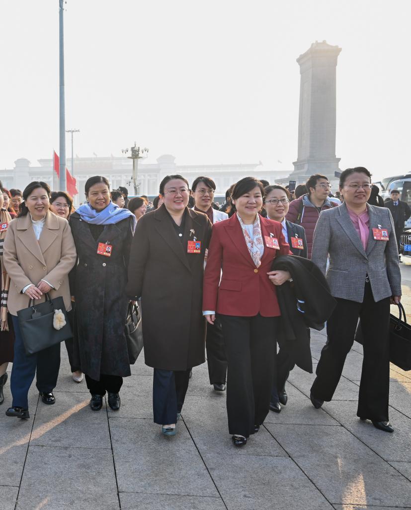 3月8日,十四屆全國人大三次會議在北京人民大會堂舉行第二次全體會議。這是全國人大代表走向會場。
